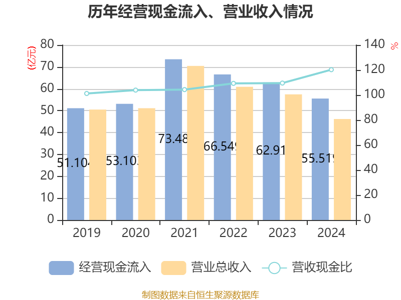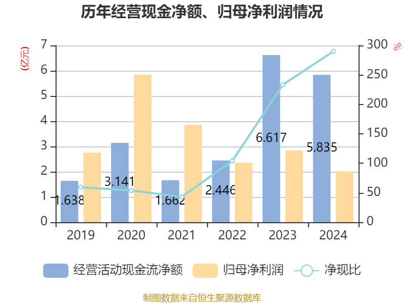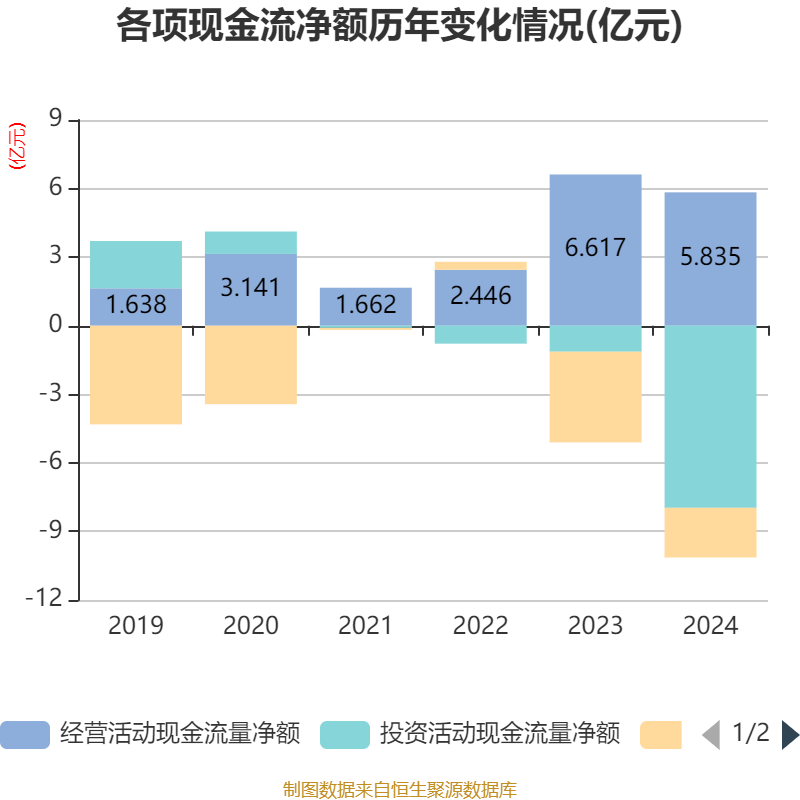 截至2024年,公司经营活动现金流净额为5.84亿元,同比下降11.8%;筹资活动现金流净额-2.17亿元,同比增加1.79亿元;投资活动现金流净额-7.97亿元,上年同期为-1.14亿元。