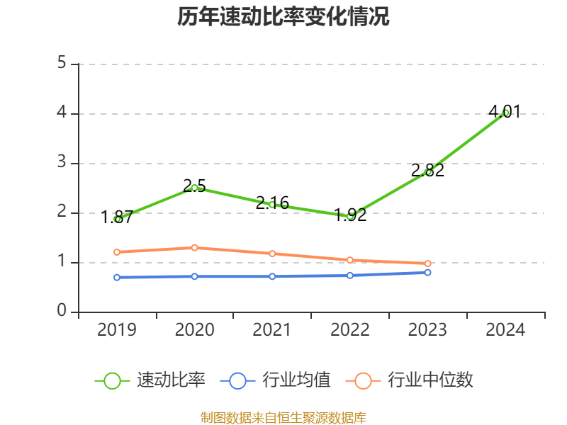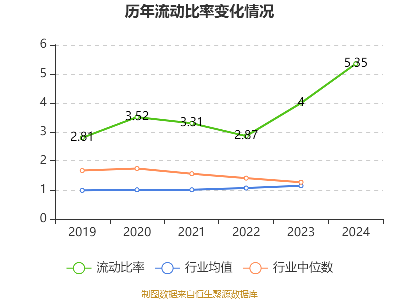 2024年,公司流动比率为5.35,速动比率为4.01。