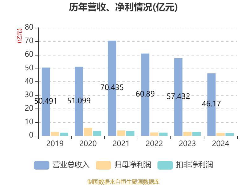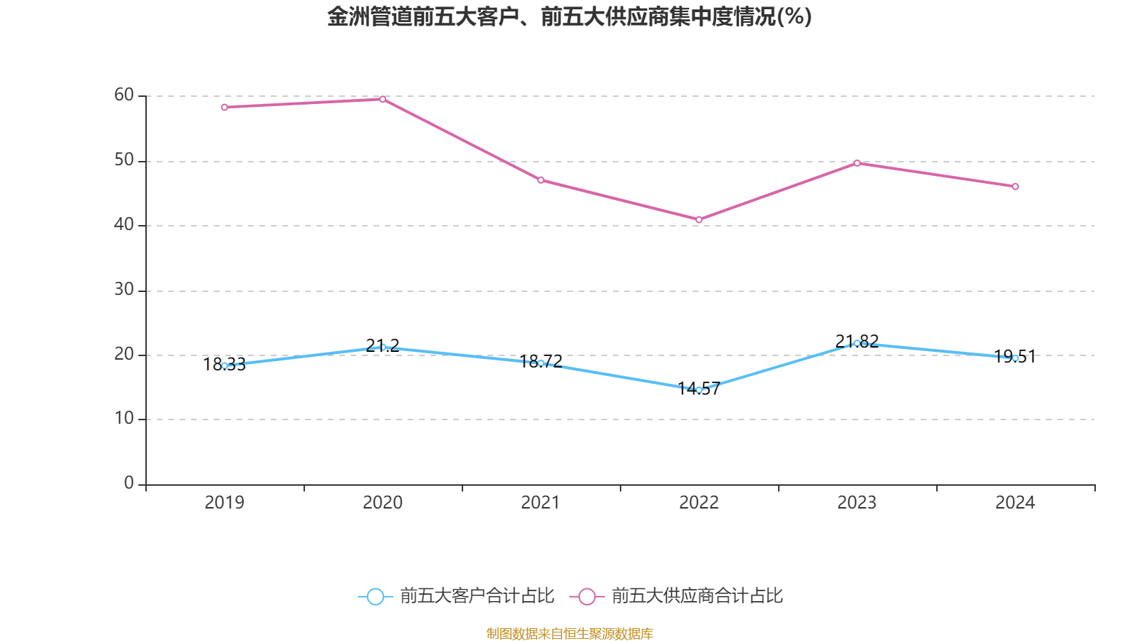中证智能财讯金洲管道(002443)4月25日披露2024年年度报告。2024年,公司实现营业总收入46.17亿元,同比下降19.61%;归母净利润2.01亿元,同比下降29.03%;扣非净利润1.91亿元,同比下降31.46%;经营活动产生的现金流量净额为5.84亿元,同比下降11.80%;报告期内,金洲管道基本每股收益为0.3894元,加权平均净资产收益率为5.86%。公司2024年度分配预案为:拟向全体股东每10股派现2元(含税)。