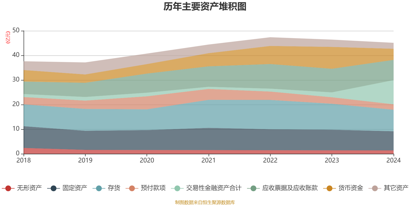 资产重大变化方面,截至2024年末,公司交易性金融资产合计较上年末增加391.86%,占公司总资产比重上升17.51个百分点;货币资金较上年末减少49.26%,占公司总资产比重下降9.15个百分点;存货较上年末减少16.79%,占公司总资产比重下降3.28个百分点;应收票据及应收账款较上年末减少14.09%,占公司总资产比重下降2.4个百分点。